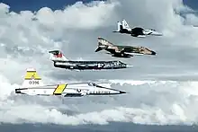 - ↑ Aircraft are Northrop F-5E Tiger II serial 72-1396, Lockheed (Fokker) F-104G Starfighter serial 63-13269, McDonnell F-4C-15-MC Phantom II serial 63-7420, and McDonnell Douglas F-15A-16-MC Eagle serial 76–0078.
