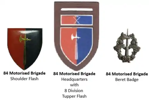84 Motorised Brigade was a formation of 8 South African Armoured Division, a combined arms force consisting of infantry, armour and artillery.