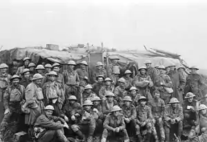 After the withdrawal from Gallipoli, the battalion returned to Egypt where the Australian Imperial Force underwent a period of re-organisation and expansion in preparation for deployment to the Western Front.[7] As a part of this re-organisation, the AIF was expanded and the 8th Battalion provided a cadre of experienced staff to form the 60th Battalion. In March 1916, the 8th Battalion embarked for France and after arriving there shortly afterwards, it took up a position in the trenches on the Somme battlefield.[1] The battalion's first major action in France came at Pozières in July 1916, during which Private Thomas Cooke performed the actions for which he was later posthumously awarded the Victoria Cross. Later the battalion fought at Ypres, in Belgium, before returning to the Somme in winter. Throughout 1917 they took part in operations against the Hindenburg Line, before being involved in the Third Battle of Ypres.[1]