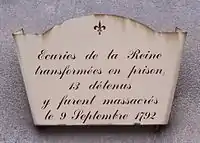 Plaque at the entrance to the écuries de la Reine