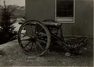 The 9 cm Feldkanone M 75/96 was a field gun used by Austria-Hungary during World War I, a modernized version of the M 75 field gun. Virtually all the M 76s were upgraded during 1898. For cost reasons the new gun retained the bronze barrel of the original, although it was actually redesigned to withstand the more powerful propellants coming into use. A touch hole lock was added to prevent accidental misfiring when the breech was open. A spring-mounted spade brake reduced recoil from 5–6 metres to 80 centimetres, although it only worked if the spade was buried in the ground. A depression lever was added to elevate the carriage's trail to allow the gun greater depression in mountainous areas. Many guns had shields added after the outbreak of World War I.