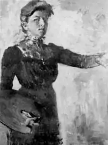Portrait of artist Alice Marion Ellen Bale holding a painter's palette