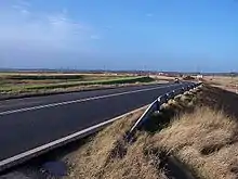 The A228 commences on a railway level crossing at Lower Stoke on the Isle of Grain, where it continues as the B2001. It begins as Grain Road, becoming Malmaynes Hall Road after it passes through Stoke running west. Passing High Halstow and turning south, it follows Sharnal Street which then becomes the Ratcliffe Highway, which bypasses Hoo St Werburgh and skirts the Deangate Ridge Golf Club. After reaching Chattenden it turns into Four Elms Hill before switching onto the new Wainscott Eastern Bypass. Entering Frindsbury, where the A289 Medway Towns northern bypass starts, it follows Frindsbury Hill and then Frindsbury Road before reaching Strood. The southern part of this Hoo Peninsula section was widened in 2005 as part of the Thames Gateway development programme. It is intended to dual the northern section to Grain at a later date (provisionally 2016).[1] [2][3]