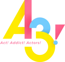 A3! (acronym for "Act! Addict! Actors!"[2]) is a Japanese mobile game developed by Liber Entertainment. The game was released on January 27, 2017, in Japan. It was given a worldwide English release on October 23, 2019, which later ended services in November 2021. The success of the game led to several adaptations for the franchise, including stage plays, an anime series, and 2 live action movies.