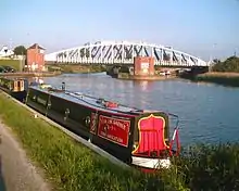 The 2-mile (3.2 km) £3.8 million Tarporley Bypass opened in September 1986. The A51 overlaps the A49. Tarporley Community High School is near here. The road leaves the A51 to the west at Four Lane Ends near the Red Fox. The road travels over the Shropshire Union Canal and under the Welsh Marches Line railway (to Hereford) south of Tiverton. It crosses over the River Gowy north of Bunbury next to the Beeston Castle (named after the real Beeston Castle to the west).