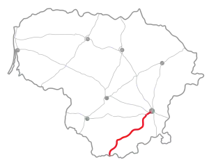 Most of the road has one lane per each direction and default 90 km/h speed limit. It is the main road connecting Vilnius with the Dzūkija region.