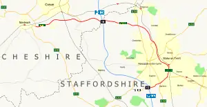 ![]() The northbound junction between the A500 and A50 | ||||