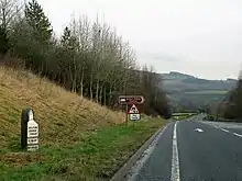 In Yorkshire at Beamsley Hill, there are two lanes east-bound (on an incline) and a single lane west-bound, some of which was improved at various points during the late 20th century, such as in Hazlewood, where the A59 was rerouted to become a largely straight road, bypassing the now older winding route which exists to its north-west.[16] The A59 was also rerouted just to the east of the Embsay and Bolton Abbey Steam Railway during the same period, requiring construction of a new Bolton Bridge over the River Wharfe, with the former alignment now forming a bridleway.[17]