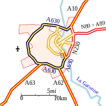 The A630 autoroute is a motorway in south west France. It is the bypass for Bordeaux, also called Rocade, and forms part of the European routes E5 E70.