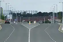 After the completion of both the GEERR and the M74, the 0.6 miles (0.97 km) stretch of Polmadie Road – between the 'old' A728 and the M74 Junction 1A, for which it is the on/off slip feeder road – subsequently took the A728 designation as well (according to motorway gantry signage and Google Maps as of 2021, whereas local signs still indicate it as being the B763);[16] this had previously been blocked off from Aikenhead Road until construction on the motorway began and a junction was created as a new access route, particularly for Hampden Park traffic. Irrespective of whether Polmadie Road is officially the A728, technically the GEERR does not connect to the motorway under that name, instead this ends at Shawfield Stadium, with the section of new road between the stadium and Hutchesontown (skirting around the reconstructed Oatlands neighbourhood with the motorway junction halfway along) labelled as part of the A730, which in the other direction continues south-eastwards to Rutherglen.