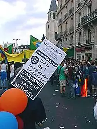 AGLA France organized a protest[5] to denounce the AAU's homophobic campaign and the denigration of gays by Armenian lawmakers and media outlets. AGLA France also picketed in front of the Armenian embassy in Paris. The association also wrote an open letter to the President of Armenia that was published a few days later in the newspaper "Haykakan Zhamanak".