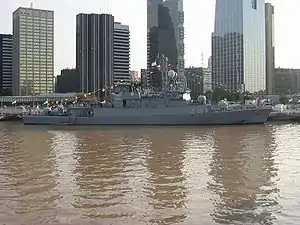 The Argentine Navy struggles to meet maintenance and training requirements because of financial problems and import restrictions. The status of Parker was not clear, as of November 2012 she was waiting for spares.[4] As of 2021, Parker was scheduled for repair work, and conversion to the offshore patrol role, at the Tandanor state-owned shipyard in Buenos Aires.[5] The work to convert the ship to her new role was expected to last through 2023.