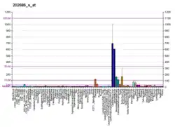 AXL protein is expressed in normal tissues, particularly in bone marrow stroma and myeloid cells, and in tumour cells and tumour vasculature.[11][12] In cancer, AXL is expressed on the tumor cells as well as adjacent immune cells including dendritic cells, macrophages, and NK cells.