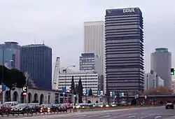 AZCA, an acronym for Asociación Mixta de Compensación de la Manzana A de la Zona Comercial de la Avenida del Generalísimo ("Mixed Association for Compensation of the A Block of the Commercial Area of the Avenue of the Generalisimo", now called the Avenue of Paseo de la Castellana), is a financial district in Madrid, Spain. The business district, which is located on the northern edge of the city centre, serves as one of the two main financial districts of the Madrid metropolitan area.