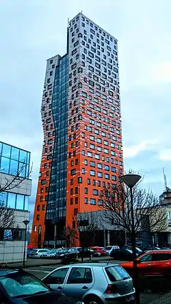 The AZ Tower is a high rise building in the city of Brno, Czech Republic. The tower is 111 m (364 ft) tall, and it has 30 floors.[1] It is currently the tallest building in the Czech Republic.[2] Construction of the building commenced in 2011 and completed in April 2013. The building has a floor area of over 17,000 m2 (180,000 sq ft). It is utilized for office, retail and residential purposes.