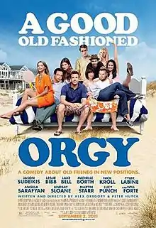 A Good Old Fashioned Orgy is a 2011 American comedy film written and directed by Alex Gregory and Peter Huyck. It stars Jason Sudeikis, Leslie Bibb, Lake Bell, Michelle Borth, Nick Kroll, Tyler Labine, Angela Sarafyan, Lindsay Sloane, Martin Starr, Lucy Punch and Will Forte. The main plot follows Eric, who, having thrown parties at his father's house for years, decides to have one last party when the house is to be sold: an orgy.