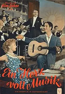 A Heart Full of Music (German: Ein Herz voll Musik) is a 1955 West German musical romantic comedy film directed by Robert A. Stemmle and starring Vico Torriani, Ina Halley and Ruth Stephan.[1][2] It was shot in Eastmancolor at the Bavaria Studios in Munich and on location in Rome and St. Moritz. The film's sets were designed by the art directors Hertha Hareiter and Otto Pischinger.