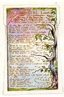 "A Little Girl Lost" is a poem written by the English poet William Blake. It was first published as part of his collection Songs of Innocence and of Experience in 1794. The poem is written as a clear authorial commentary from Blake, focusing on the tension between human passions and societal expectations.[1]