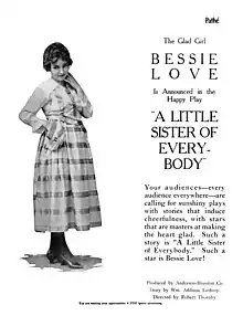 A Little Sister of Everybody, sometimes called A Little Sister to Everybody,[3] is a 1918 American silent comedy-drama[4] film directed by Robert Thornby and starring Bessie Love and George Fisher.[5] It was produced by Anderson-Brunton Company and distributed by Pathé.