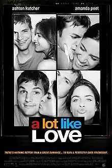 A Lot Like Love is a 2005 American romantic comedy-drama film directed by Nigel Cole and starring Ashton Kutcher and Amanda Peet. The screenplay by Colin Patrick Lynch focuses on two individuals whose relationship slowly evolves from lust to friendship to romance over the course of seven years.