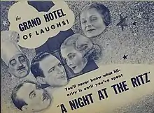 A Night at the Ritz is a 1935 American comedy film directed by William C. McGann and starring William Gargan, Patricia Ellis and Allen Jenkins.[1] The art direction was by Esdras Hartley. The film is of interest because the storyline, involving a con artist trying to profit off an impersonation, somewhat anticipates the more-famous Nothing Sacred two years later.