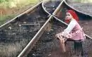Reenactment of Eva sitting on the railroad tracks (taken from the film)