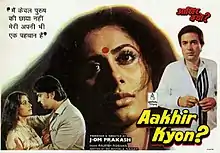 Aakhir Kyon? (transl. But why?) is a 1985 Indian Hindi-language film produced and directed by J. Om Prakash. It stars Rajesh Khanna, Smita Patil, Rakesh Roshan and Tina Munim.[1] The movie was declared a hit on its release.