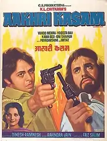 Aakhri Kasam is a 1979 Bollywood action film directed by Dinesh-Ramnesh.[1] The film stars Kabir Bedi, Vinod Mehra, Yogeeta Bali and Om Shivpuri in lead roles.[2]