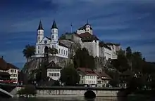 Aarburg Castle (German: Festung Aarburg) is a castle in the municipality of Aarburg in the canton of Aargau in Switzerland. It is located high above the town Aarburg on a steep, rocky hillside. The castle was built around a medieval castle, which controlled the narrow point on the Aare river and served as the seat of Aarburg Vogt. It is classified as a Swiss heritage site of national significance.[1] Today it houses the Kantonale Jugendheim, for holding and rehabilitating juvenile offenders.