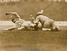 ![]() Aaron Ward getting tagged out at 3rd during the first game at Yankee Stadium. | |