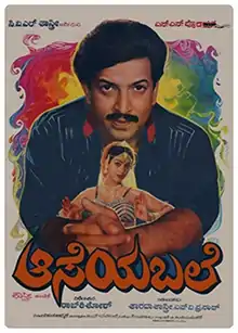 Aaseya Bale is a 1987 Indian Kannada drama film, directed by Raj Kishor. The film featured Vishnuvardhan, Nalini and Jai Jagadish in pivotal roles.[1] The music was composed by Vijaya Bhaskar, to the lyrics of Chi. Udaya Shankar and R. N. Jayagopal.