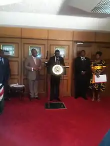 Namwamba was first elected to parliament in the 2007 Kenyan parliamentary election as a member of the Orange Democratic Movement (ODM), representing Budalang'i Constituency in the National Assembly of Kenya.[4] He was Parliamentary Secretary of the ODM from 2008 to 2013,[2] and served as Minister for Sports and Youth Affairs from 2012 until the ODM lost office in the 2013 election.[5]