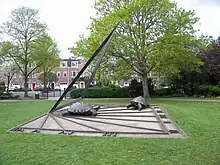 At the northern end in the park, installed in 2000, is the outdoor sculpture Tortoises with Triangle and Time by Wendy Taylor, commissioned by the Royal Borough of Kensington and Chelsea for the Millennium.[4]