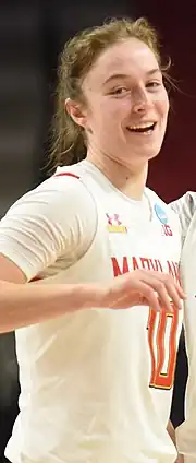 On April 15, 2022, Meyers announced she was transferring as a graduate to Maryland.[4][20][21] During the 2022–23 season, in her first season at Maryland, she had the lowest turnover percentage (10.0) in the Big Ten, and averaged 14.3 points, 5.1 rebounds, and 1.8 steals (9th in the conference) per game. She helped the Terrapins advance to the Elite Eight at the 2023 NCAA Division I women's basketball tournament for the first time since 2015.[22][23][24][25] Following the season she was named to the All-Big Ten second team.[26]