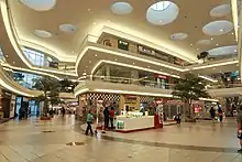 There are restaurants on its upper floors. An indoor musical fountain, similar to the one in front of Bellagio Hotel in Las Vegas but smaller in scale, was built at the centre of the mall and performs shows every hour.[2]