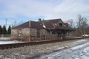 Aberdeen station is a former Baltimore and Ohio Railroad (B&O) station in Aberdeen, Maryland. The station was designed by architect Frank Furness, who designed some 40 stations for the B&O in Delaware, Maryland, and Pennsylvania.[1] The station has deteriorated in condition mightily since B&O ended service in 1955, and was almost torn down in 2003. An eleventh hour agreement was made by CSX and the Historical Society of Harford County to save the building. The station was transferred from the Historical Society of Harford County to the Aberdeen Historical Museum in 2016. [2]