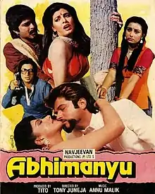 Abhimanyu is a 1989 Indian Hindi-language action drama film directed by Tony Juneja. The film stars Anil Kapoor, Kimi Katkar, Poonam Dhillon and Anita Raj.[1] It is a remake of the 1982 Tamil film Sakalakala Vallavan. It was flop despite being satisfactory opening.