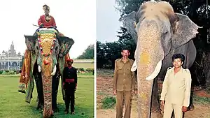- ↑ "54-year-old Abhimanyu to carry golden howdah this Dasara". The Hindu. 11 September 2020.