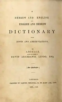 Abigail Lindo (3 August 1803 – 28 August 1848) was a British lexicographer. She was the first British Jew who compiled a Hebrew-English dictionary. She is considered to be the only woman to have made a significant contribution to philology in the nineteenth century.