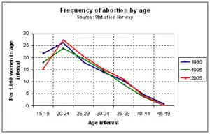 Between 1999 and 2003, 1,740 applications for abortions between the 12th and 16th week were considered by commissions in Norway. Of these, 1647, or 95.2% were approved.[5]