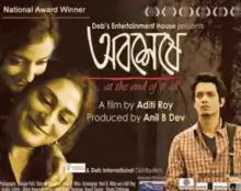 Abosheshey (At the End of it All) is a 2011 Indian film in Bengali starring Roopa Ganguly, Raima Sen and Ankur Khanna in lead roles. The film is the directorial debut of Aditi Roy.[1] The film was screened at various international film festivals and received many accolades. The story is about a son who is trying to learn about his dead mother.[2][3]