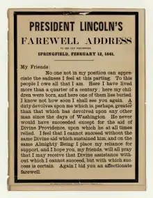 - 1 2 3 "Broadside, "President Lincoln's Farewell Address to His Old Neighbors, Springfield, February 12, 1861" - The Henry Ford". www.thehenryford.org. Retrieved 2020-12-05.