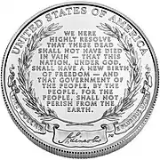 1. "Abraham Lincoln Commemorative Silver Dollar". United States Mint. Retrieved June 11, 2019.