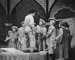 ![]() Abu Hassan (Peter Schreier) and his creditors in a 1960 performance | |