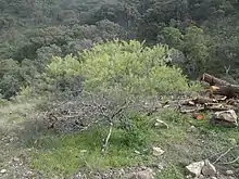 It is found along the Great Dividing Range in western parts of New South Wales, Queensland and Victoria where it is often a part of dry sclerophyll forest or open woodland communities[3] on rocky slopes and creek banks[2] growing in rocky soils.[3] The bulk of the population has a discontinuous distribution from around Walcha in the north down to the upper reaches of the Snowy River north-eastern Victoria.[2]