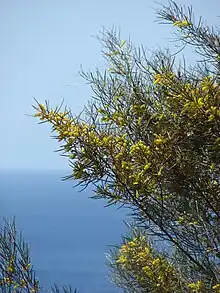 Mulga savanna and mulga codominant tussock grasslands cover roughly 20% of the Australian continent, or about 1.5 million square kilometres. The mean rainfall for much of the habitat for A. aneura in Australia is roughly 200–250 mm/year, but it goes to as high as 500 mm/year in New South Wales and Queensland. The lowest mean rainfall where it grows is about 50–60 mm/year.[4] Both summer and winter rainfall are necessary to maintain mulga, and the species is absent from semiarid regions that experience summer or winter drought.[5]