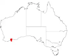 It is native to a small area in the Fitzgerald River National Park in Great Southern regions of Western Australia.[2] It grows in shallow sand over quartzite among low open heath, shrubland and mallee communities.[3]
