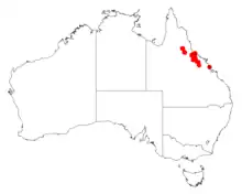It is endemic to parts of north-eastern Queensland including around the Argentine mine which is found approximately 60 km (37 mi) south west of Townsville where it is situated on plains and in gorges growing in brown loamy soils overlying Argentine schist bedrock as a part of Eucalyptus woodland communities.[2]