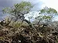 Acacia koaia, Koaiʻa, is highly adapted to dry habitats, and is capable of forming dense forests in areas with very little rainfall. It was formerly found widely in dry forests on all of the main islands. Associated plants include uluhe (Dicranopteris linearis), hala (Pandanus tectorius), koʻokoʻolau (Bidens spp.), kokiʻo (Hibiscus kokio), nehe (Lipochaeta spp.), hala pepe (Dracaena spp.), and ʻōhiʻa lehua (Metrosideros polymorpha).[2]