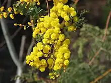 It grows to between 1.5 and 4 metres high and has pinnate leaves.[2] The bright-yellow globular flowerheads appear in axillary racemes, mostly between July and November in its native range.[2] These are followed by thin leathery pods which are 4–17 cm long and 10–19 mm wide.[2]